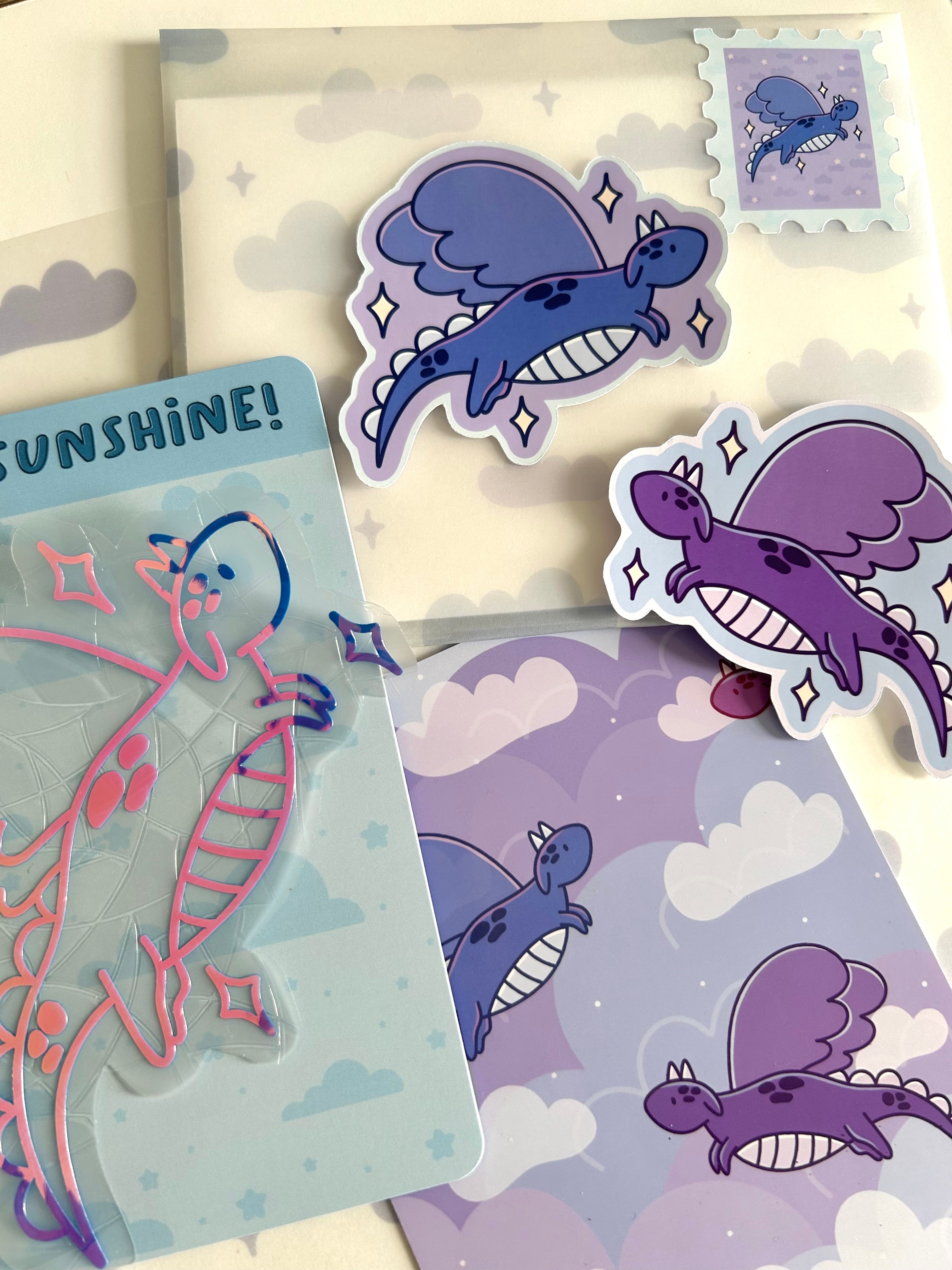 What could possibly be better than a Dino dressed up as a Christmas tree? Nothing, I love this lil dude hanging out on my window, in the rare winter sun it brings me wonderful rainbows and on the gray days still cheers up the place!