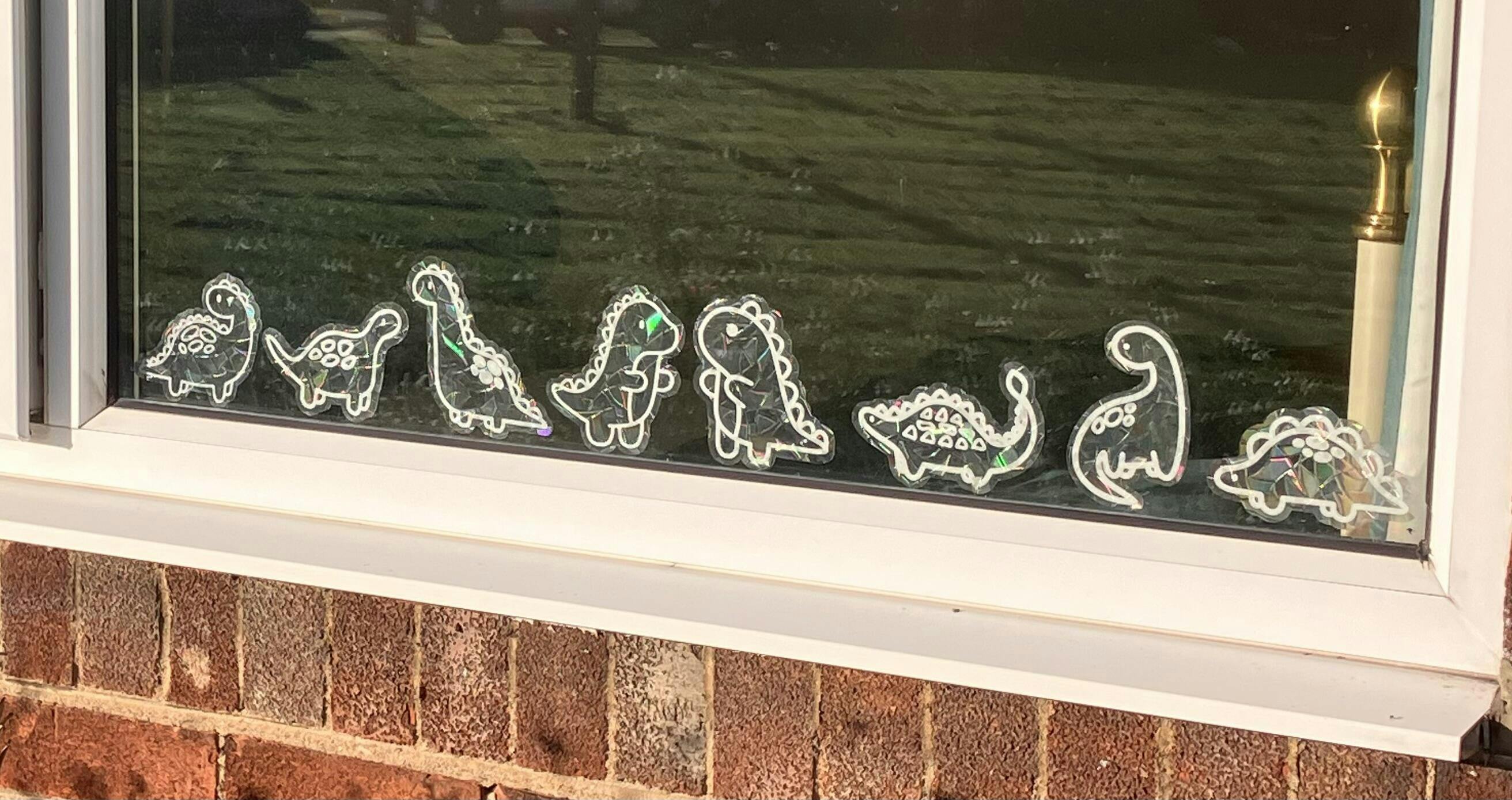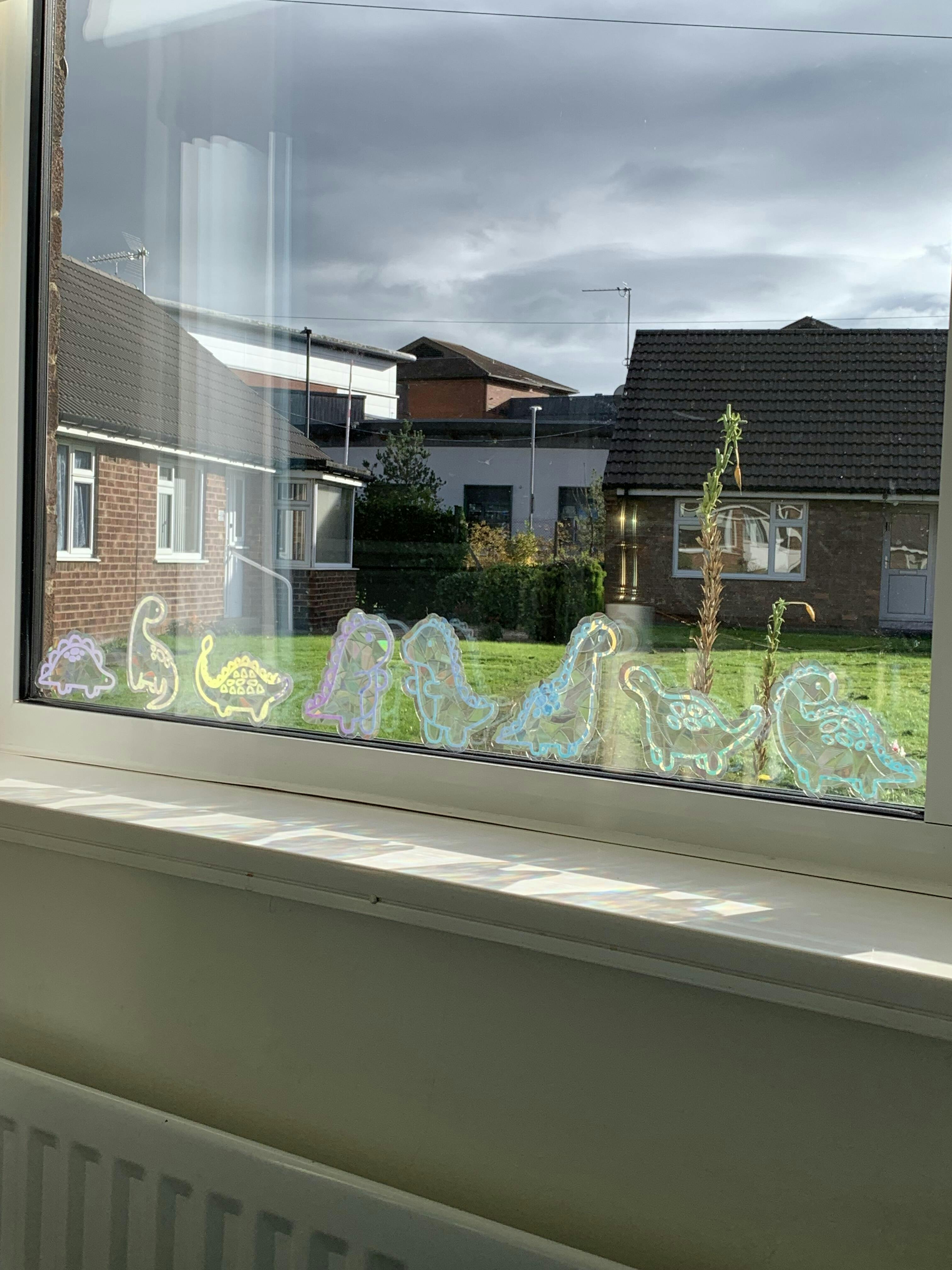 Adorable Dino Suncatcher that sticks on to your window and casts rainbows across your room on bright sunny days!
