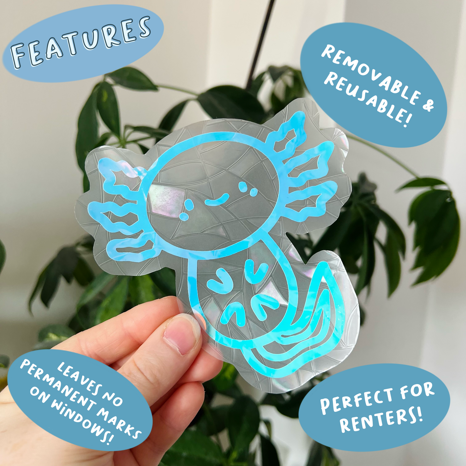 Adorable Axolotl Suncatcher that sticks on to your window and casts rainbows across your room on bright sunny days!