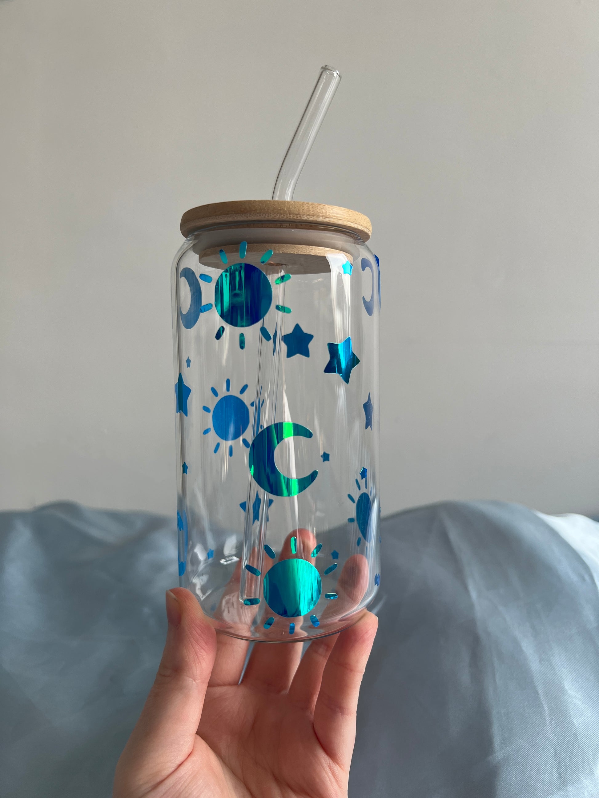 Each cup is made of high borosilicate glass and includes a bamboo lid and reusable glass straw. Each cup can hold up to 454ml (16oz) of liquid and is suitable for hot or cold drinks.