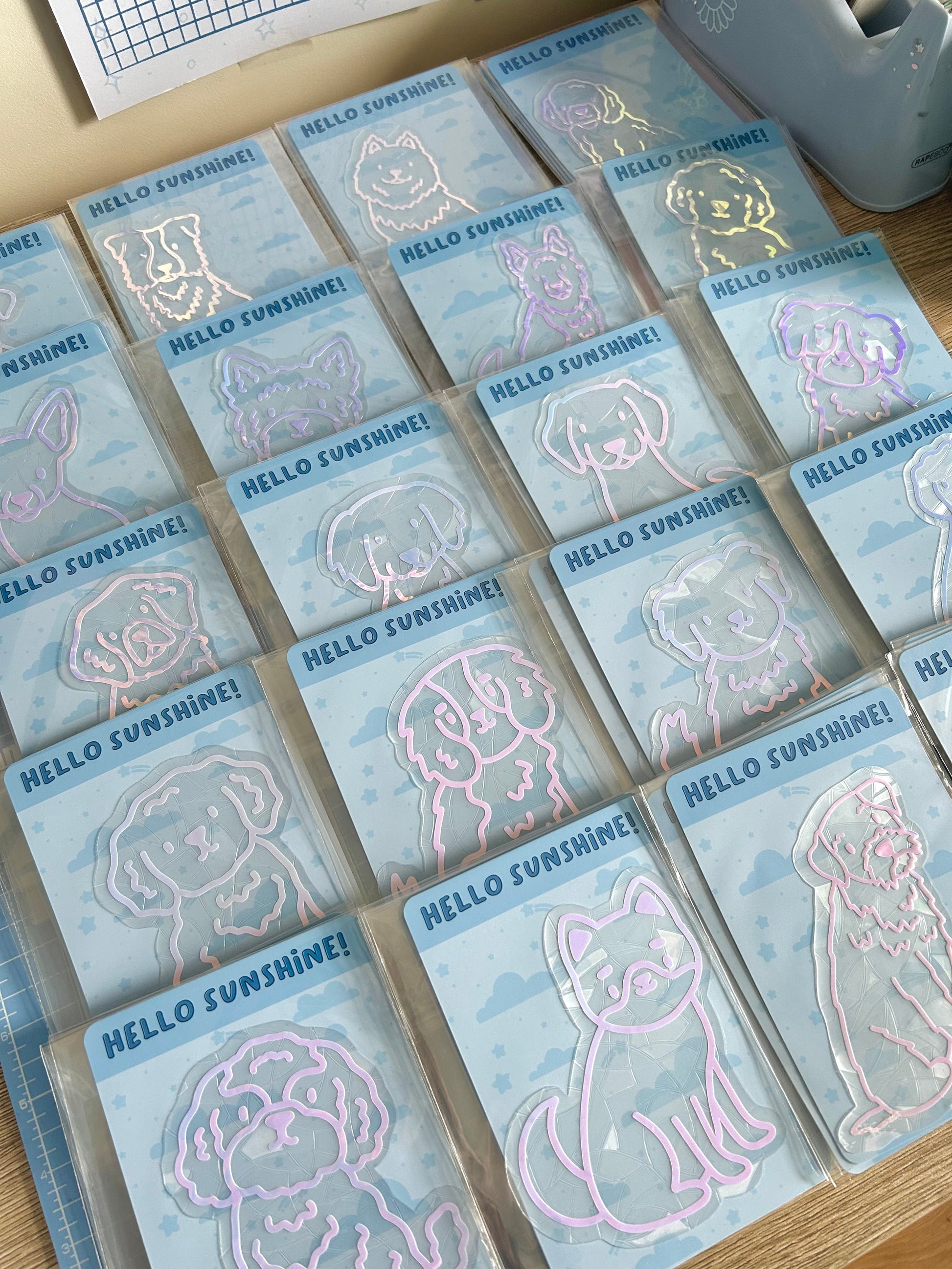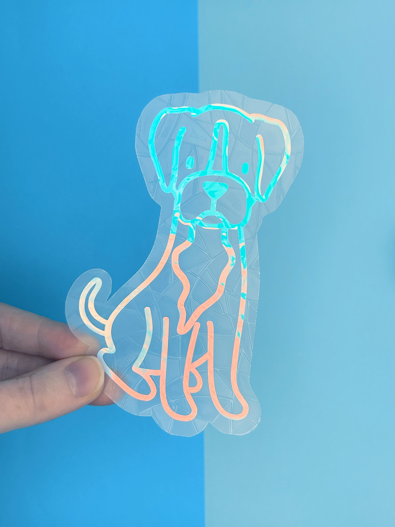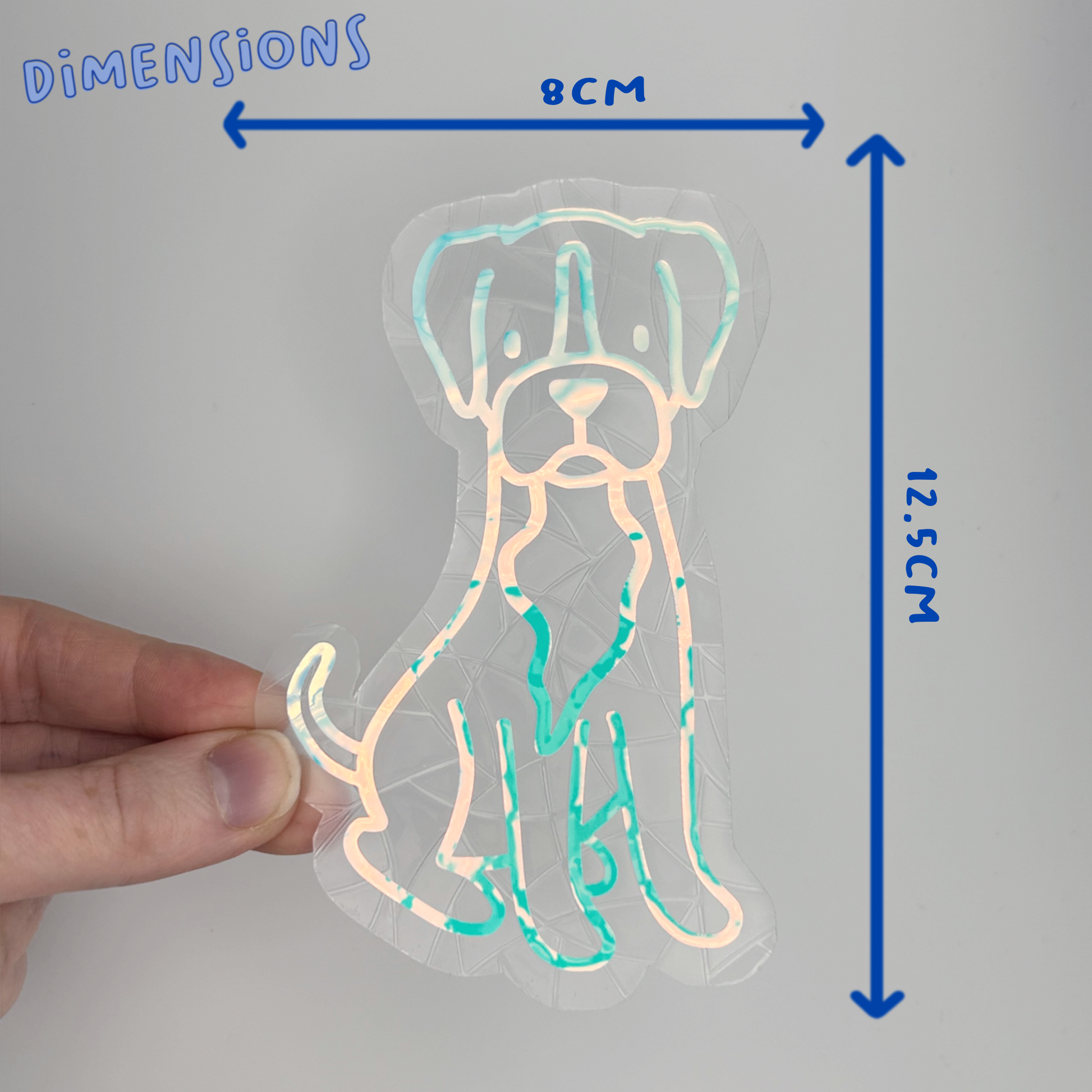 Adorable Dog Suncatcher that sticks on to your window and casts rainbows across your room on bright sunny days! Perfect addition to any dog lovers window!