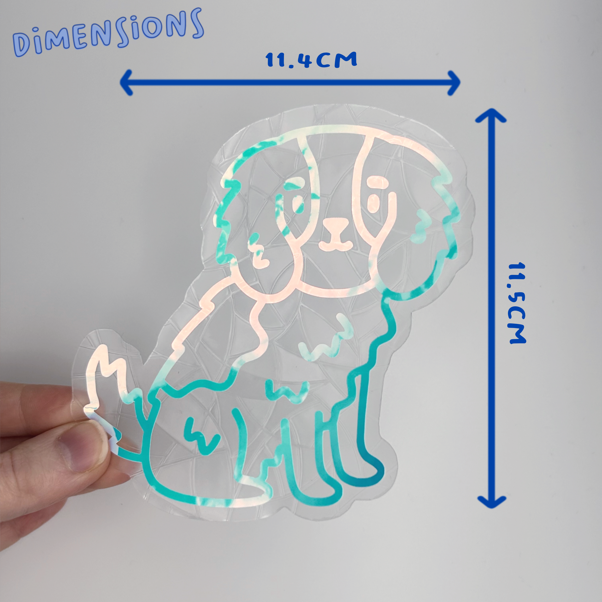 Each suncatcher has a holographic dog over the top of the backgroun. . . Show More >