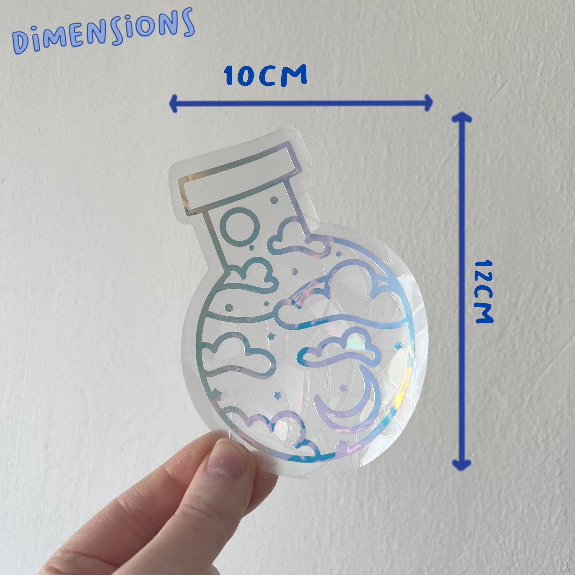 Each suncatcher has a holographic celestial potion over the top of the background shape.