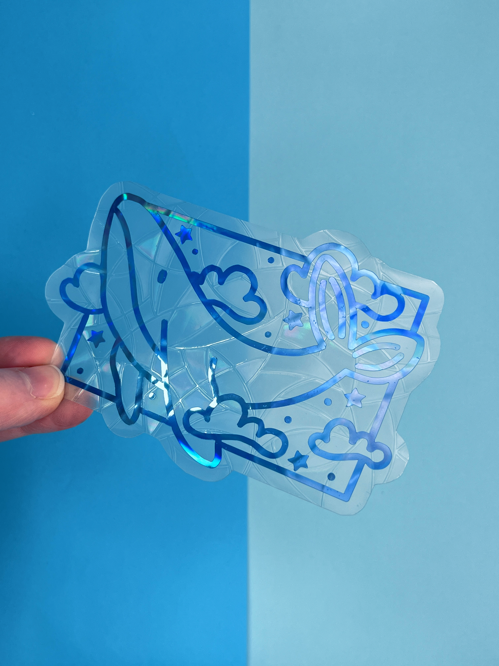 Each suncatcher has a holographic whale over the top of the background shape.