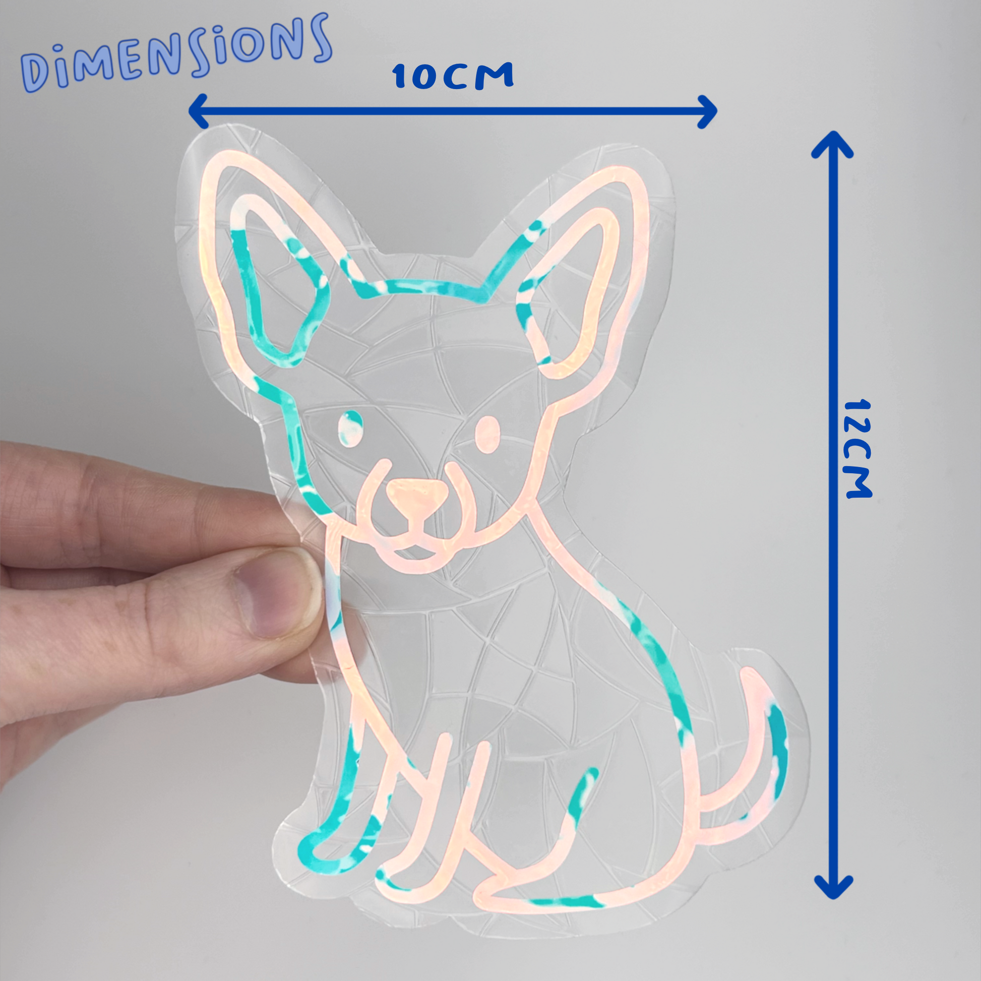 Adorable Dog Suncatcher that sticks on to your window and casts rainbows across your room on bright sunny days! Perfect addition to any dog lovers window!