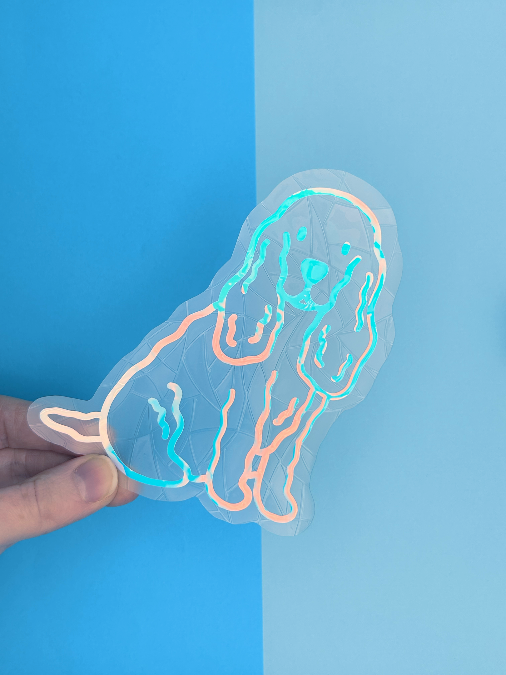 Adorable Dog Suncatcher that sticks on to your window and casts rainbows across your room on bright sunny days! Perfect addition to any dog lovers window!