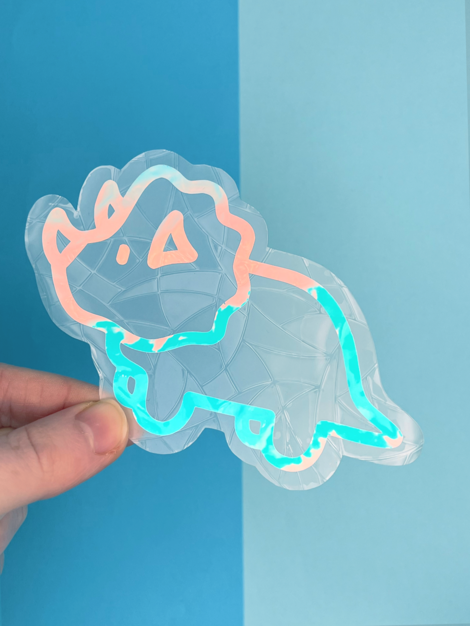 Each set includes 6 suncatchers which have a holographic dino over the top of each of the background shapes.