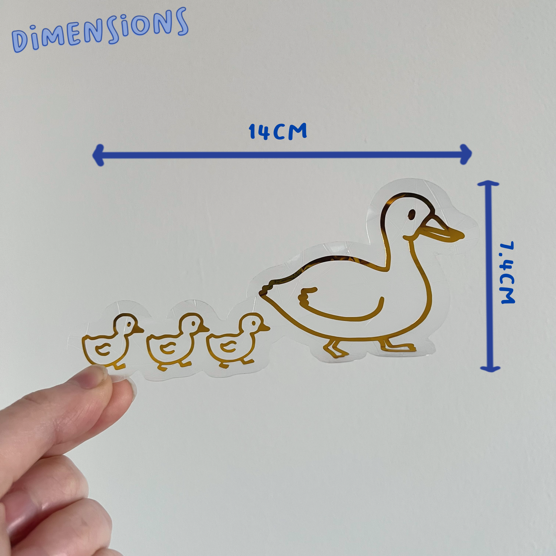 Each suncatcher has a holographic golden line of ducks over the top of the background shape.