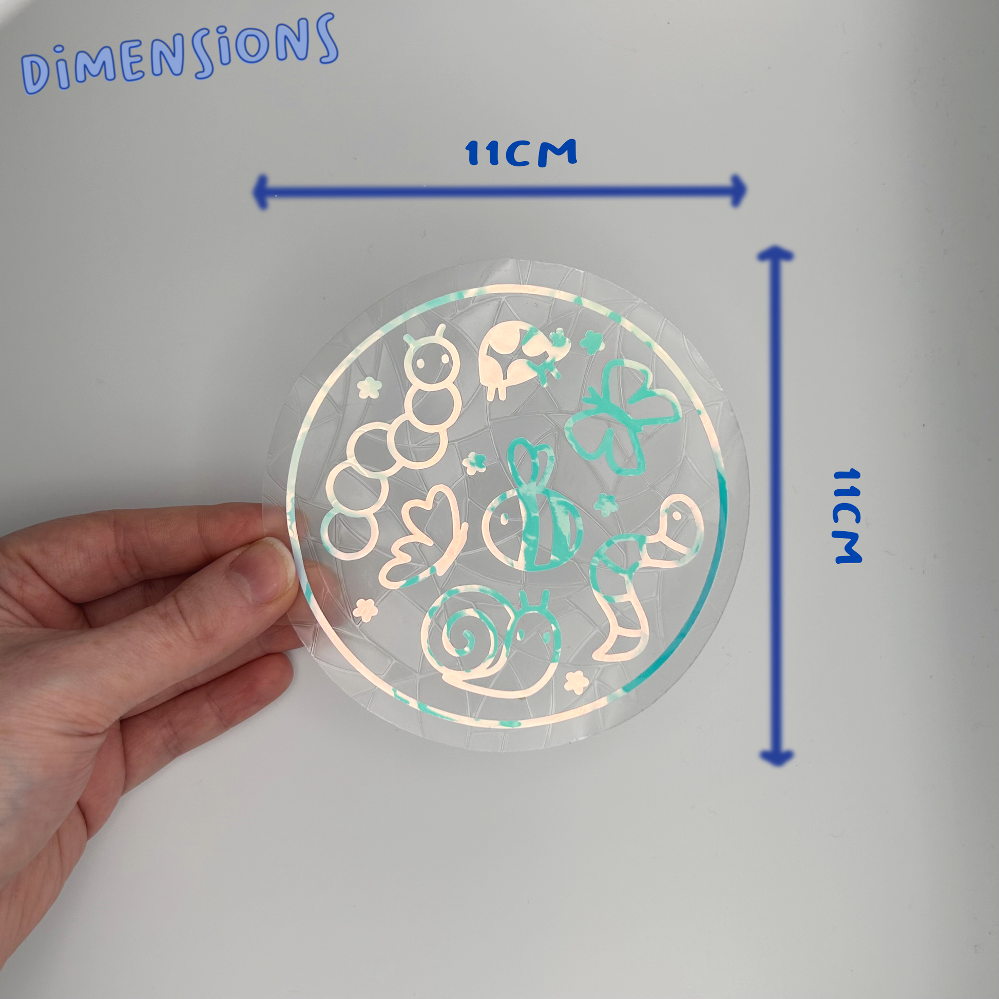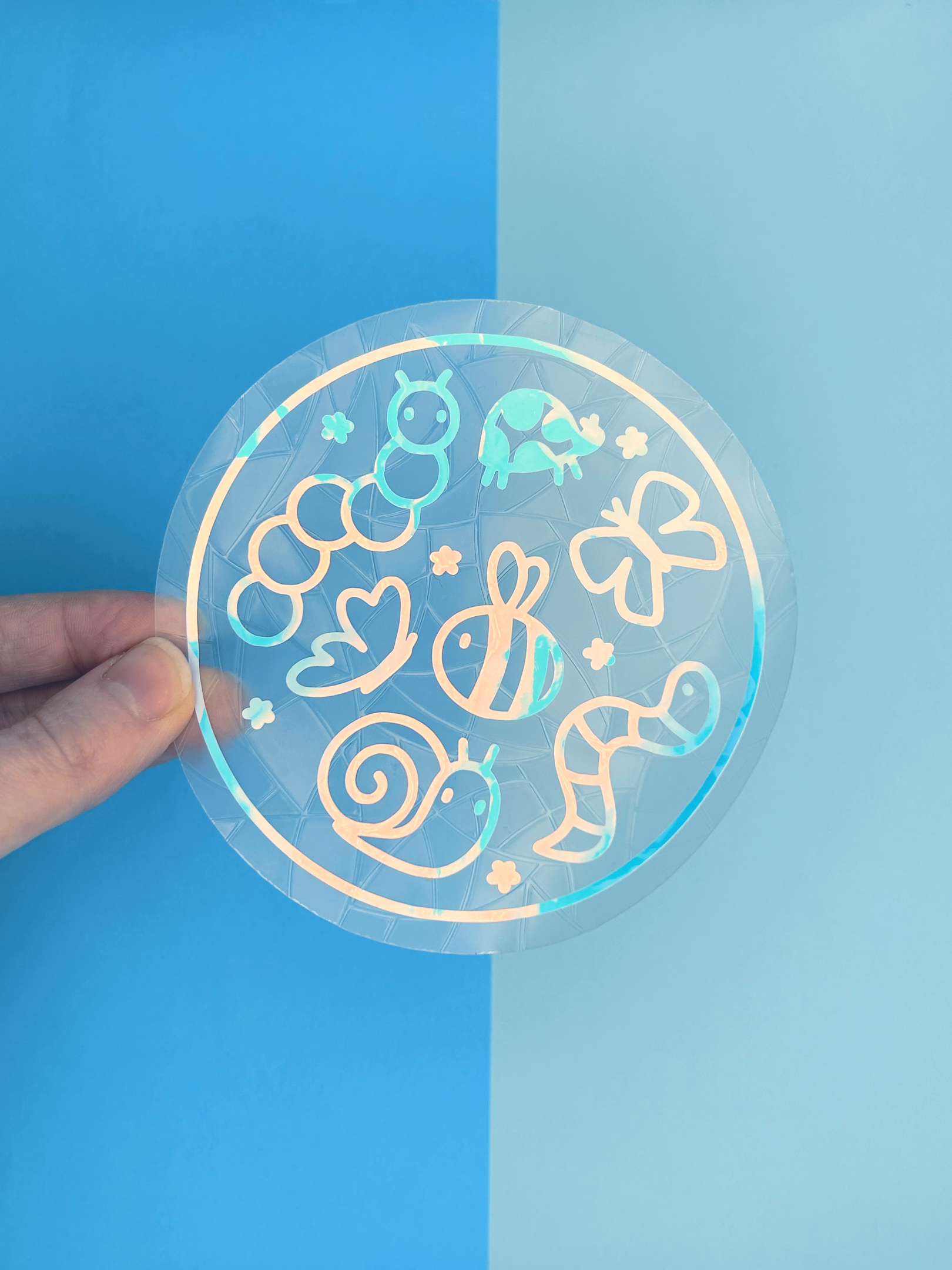 Each suncatcher has a holographic bug group over the top of the background shape.
