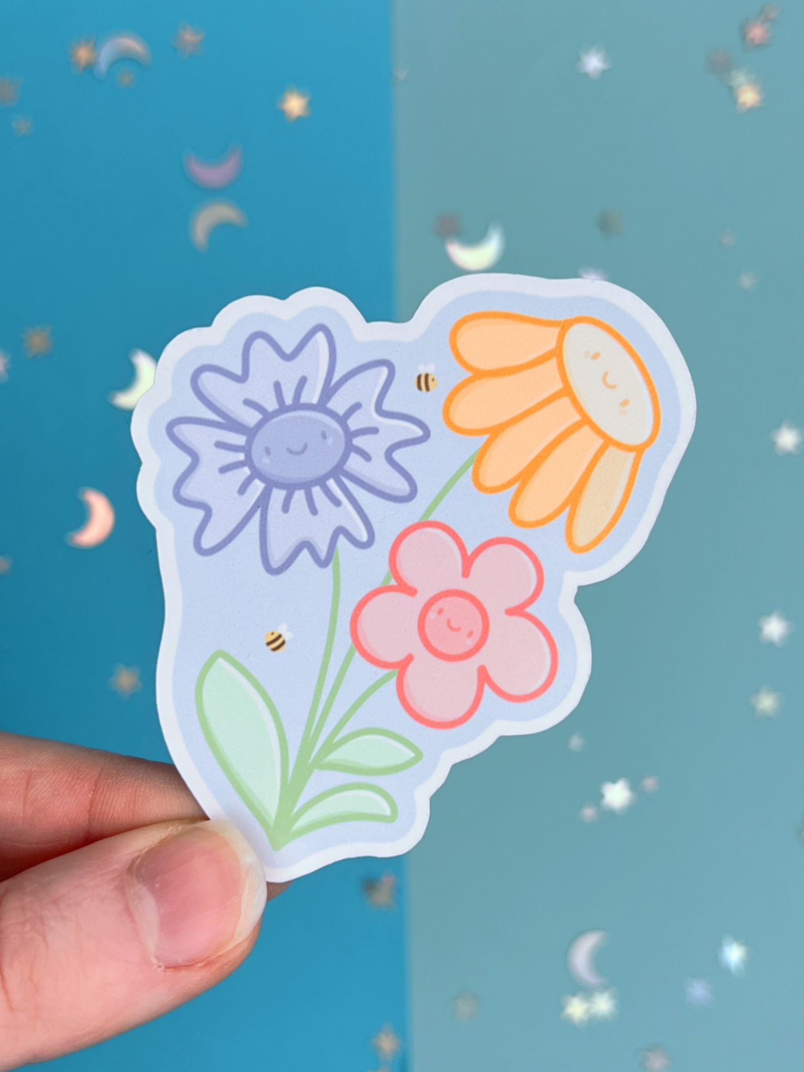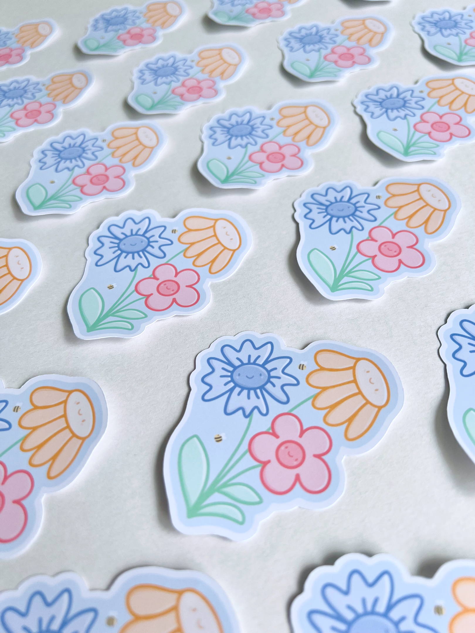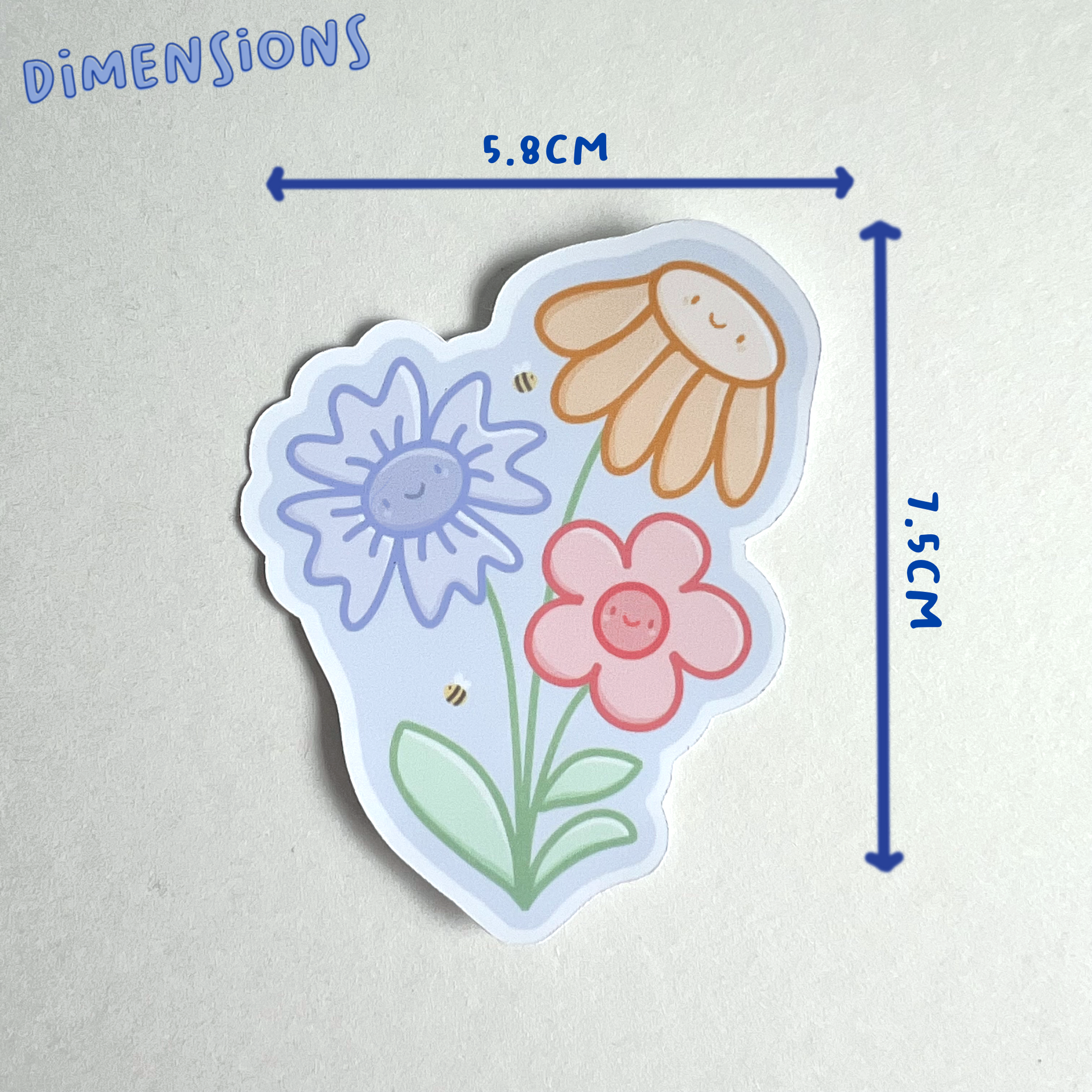 Die cut glossy floral sticker approximately 5.8 x 7.5cm (width x height)