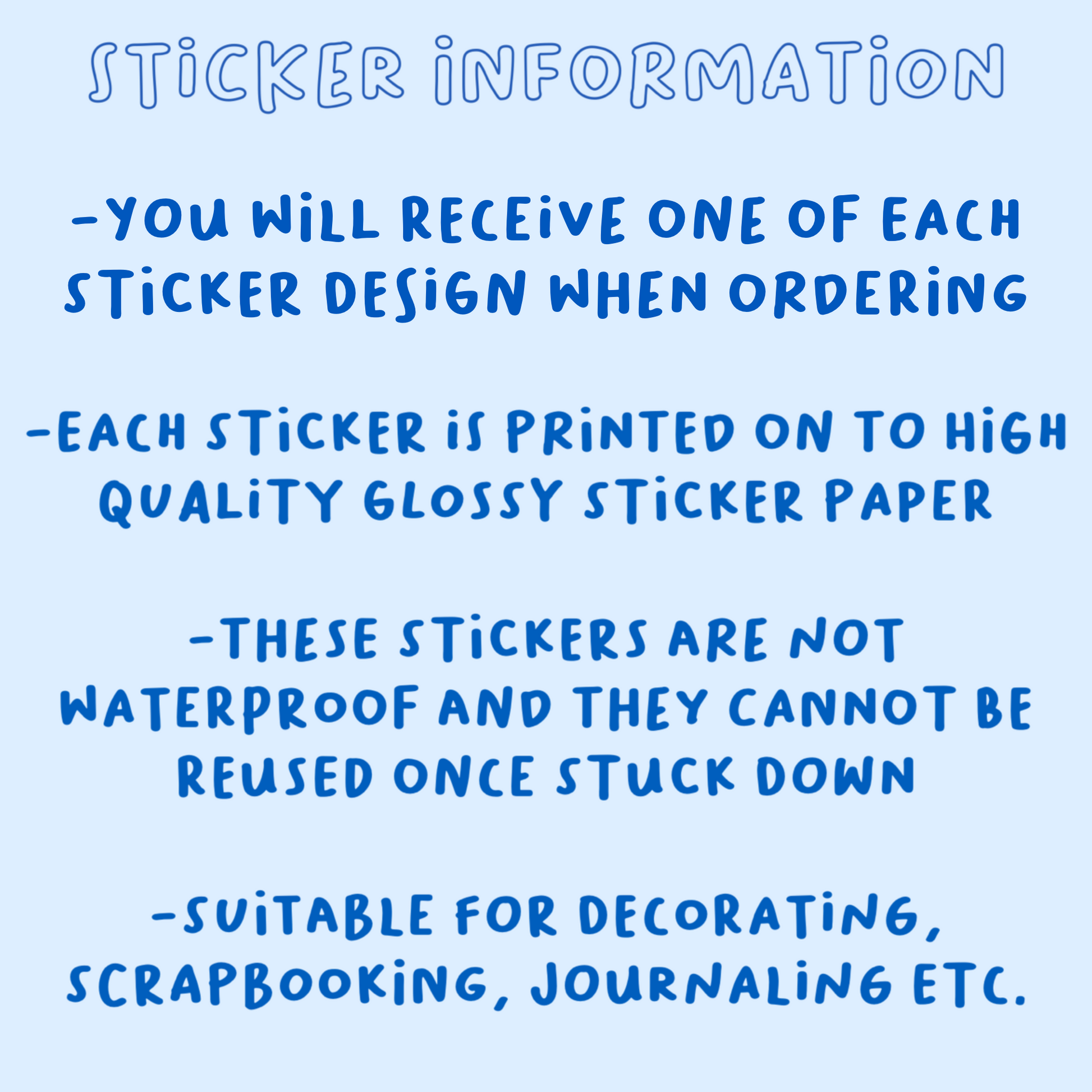 Please note there be a slight colour difference between the stickers and your computer screen.