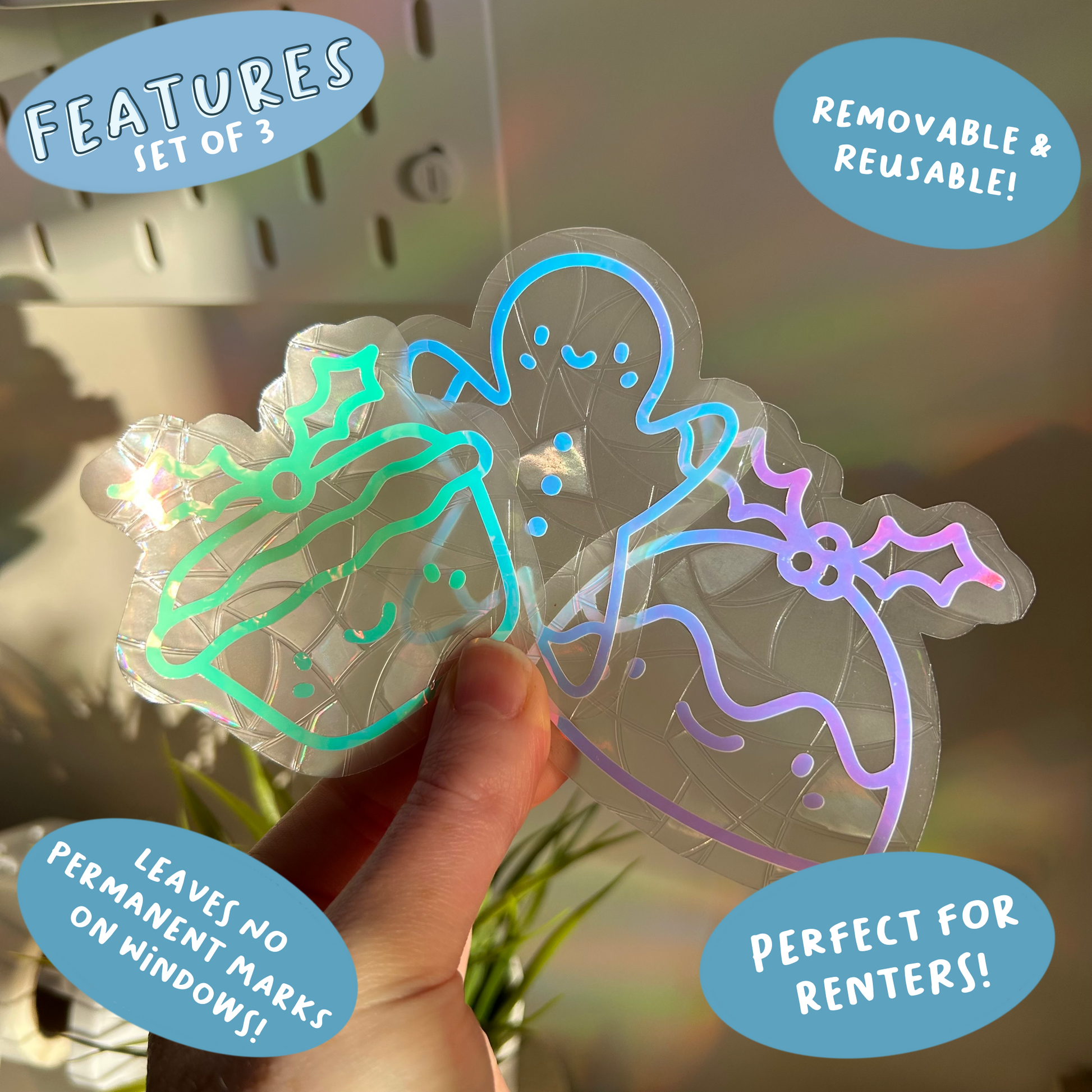 Adorable Christmas Suncatchers that cling on to your window and cast rainbows across your room on bright sunny days!