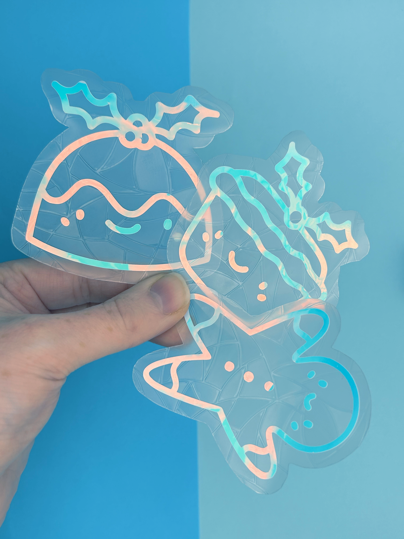 These suncatchers will come as a pack of 3 different mini christmas treats.