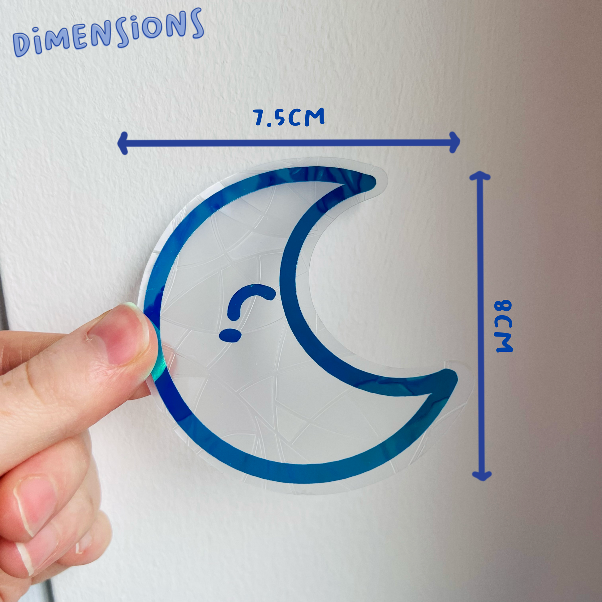 Each suncatcher has a holographic blue moon over the top of the background shape.