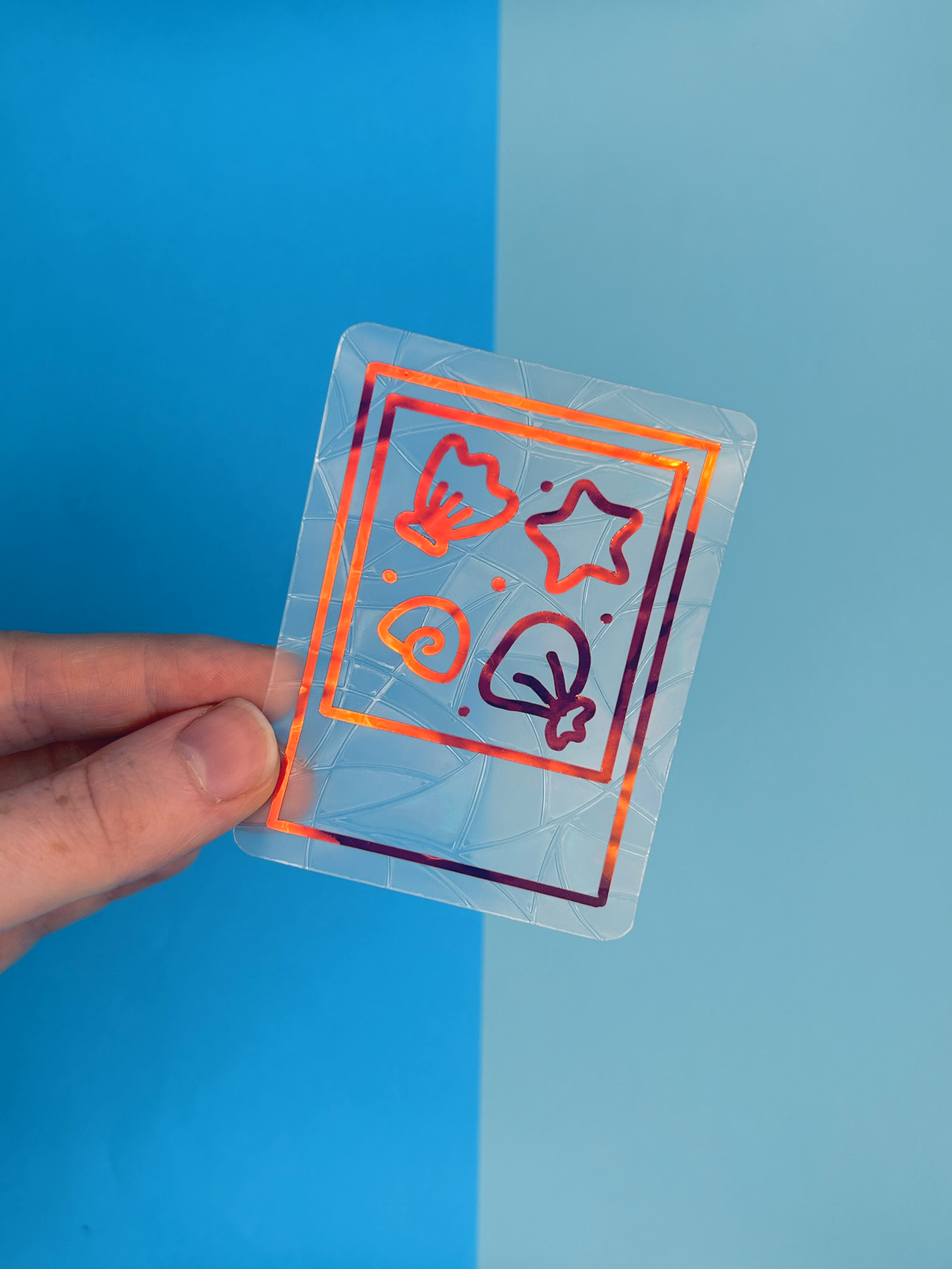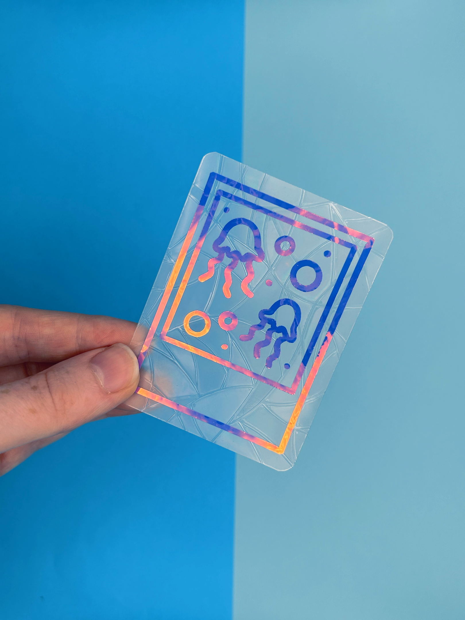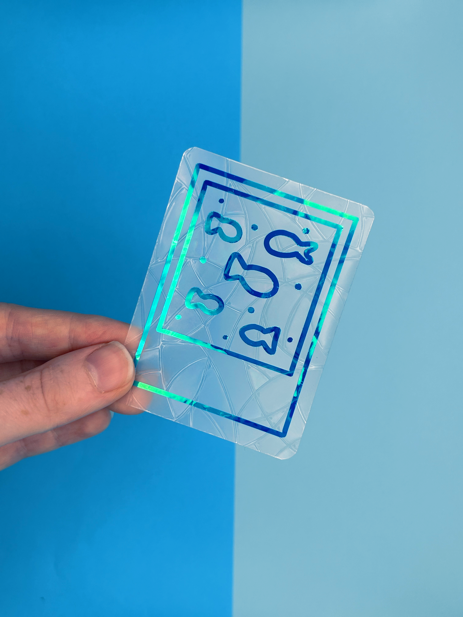 Each set has a holographic sealife photo over the top of each background shape.