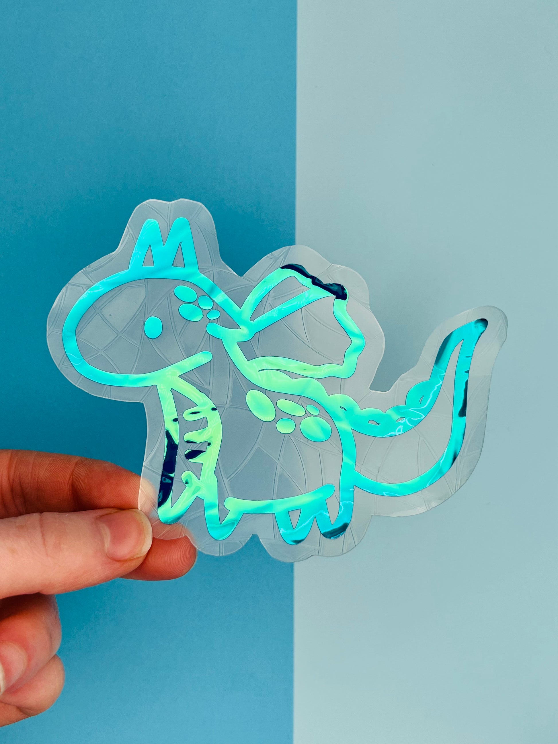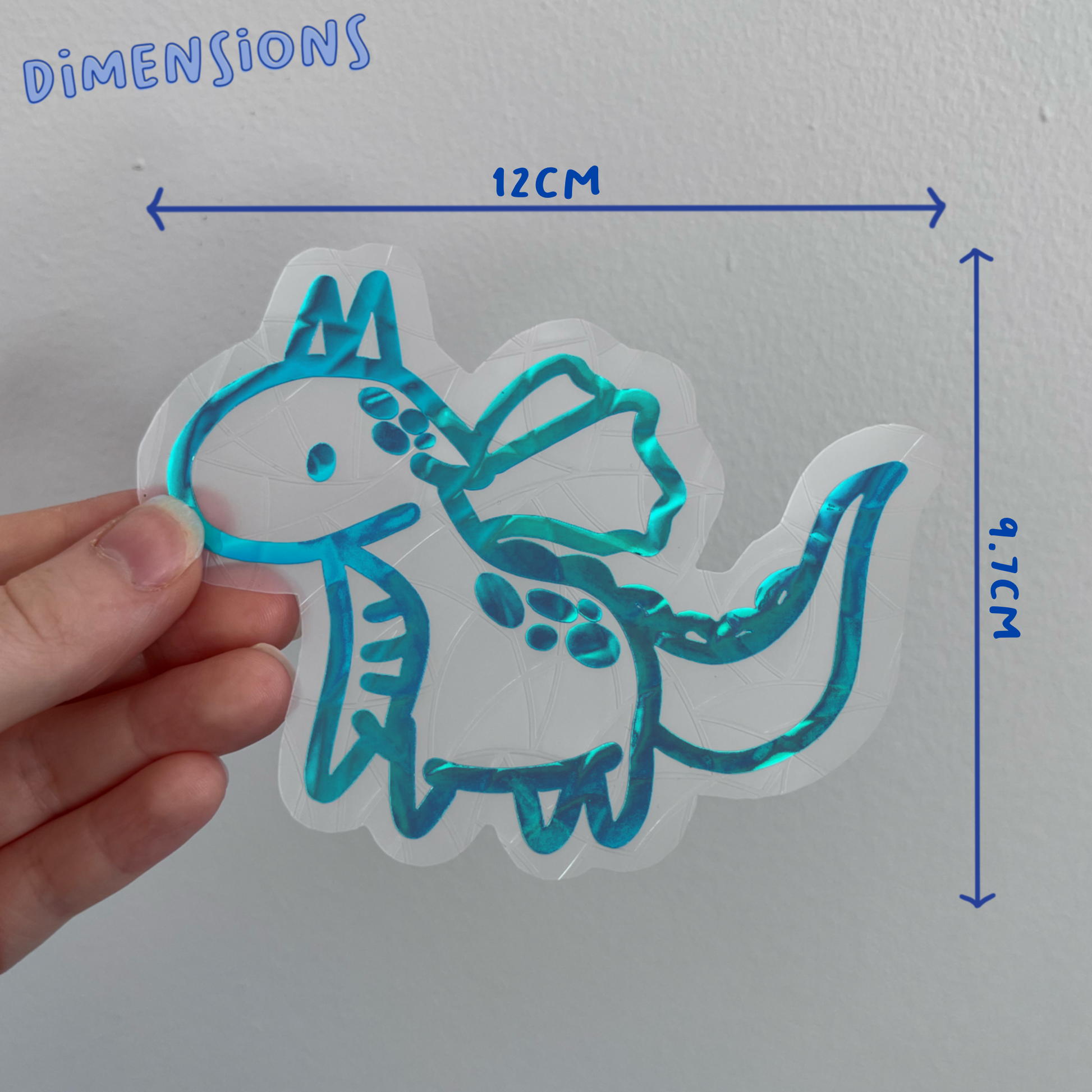 Each suncatcher has a holographic blue dragon over the top of the background shape.