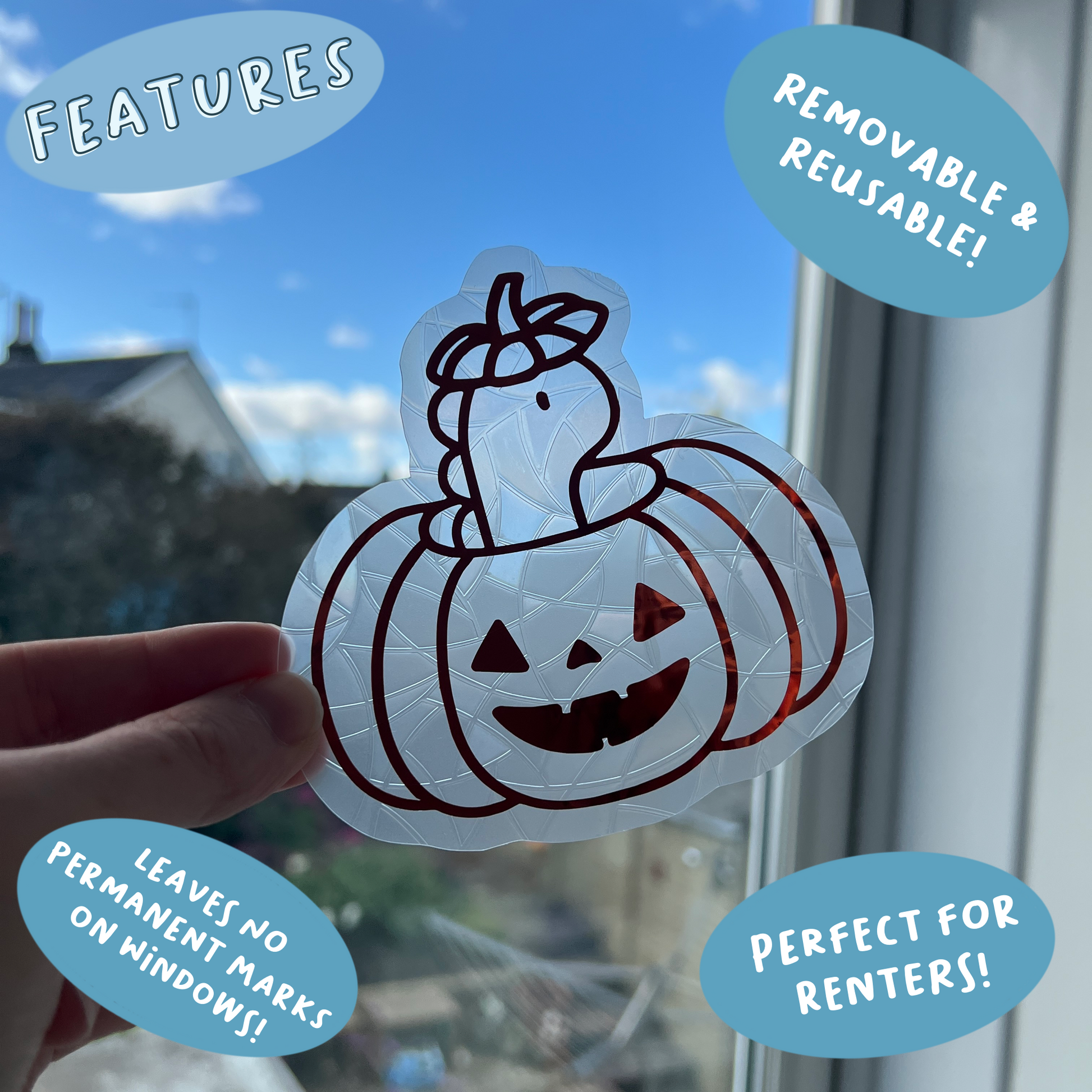 Adorable Pumpkin Dino Suncatcher that sticks on to your window and casts rainbows across your room on bright sunny days!