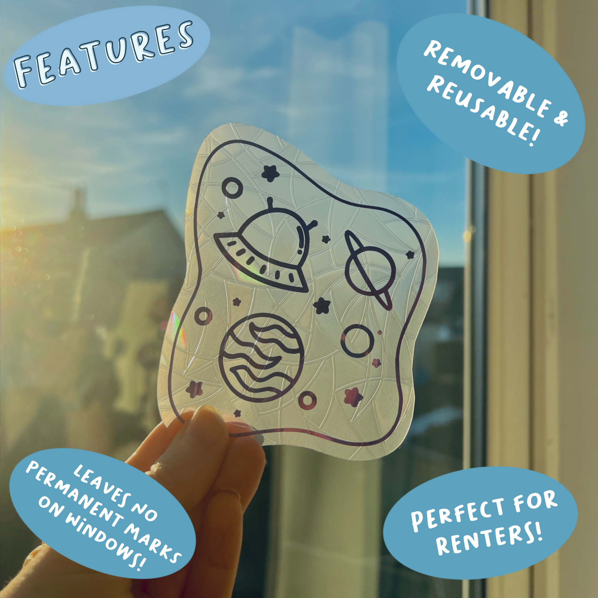 It's that simple! These suncatcher stickers are also easy to remove and are reusable, making them perfect for people who are renting a property!. So why wait? Add a touch of magic to your home today with these suncatcher stickers.