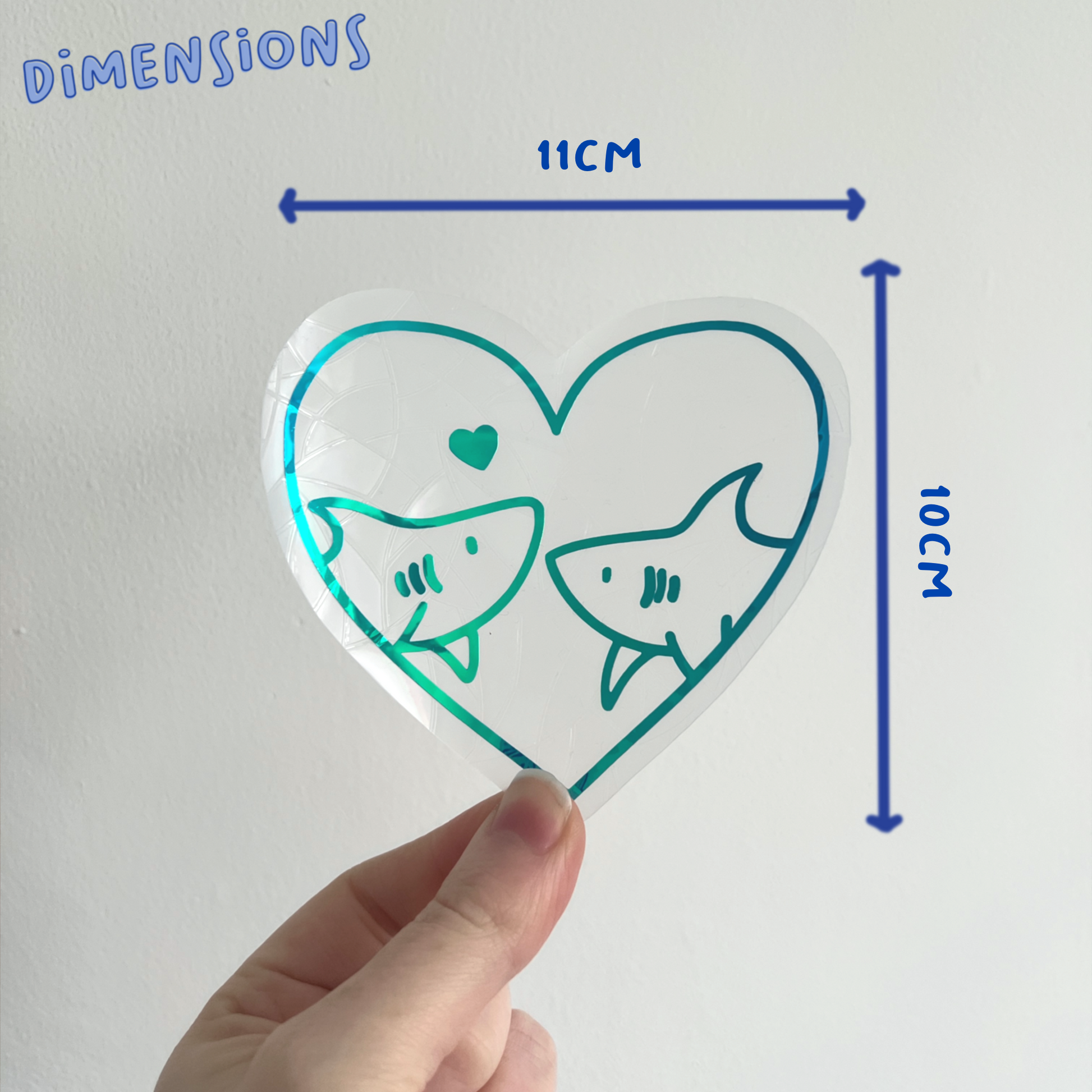 Each suncatcher has a holographic blue heart over the top of the background shape.