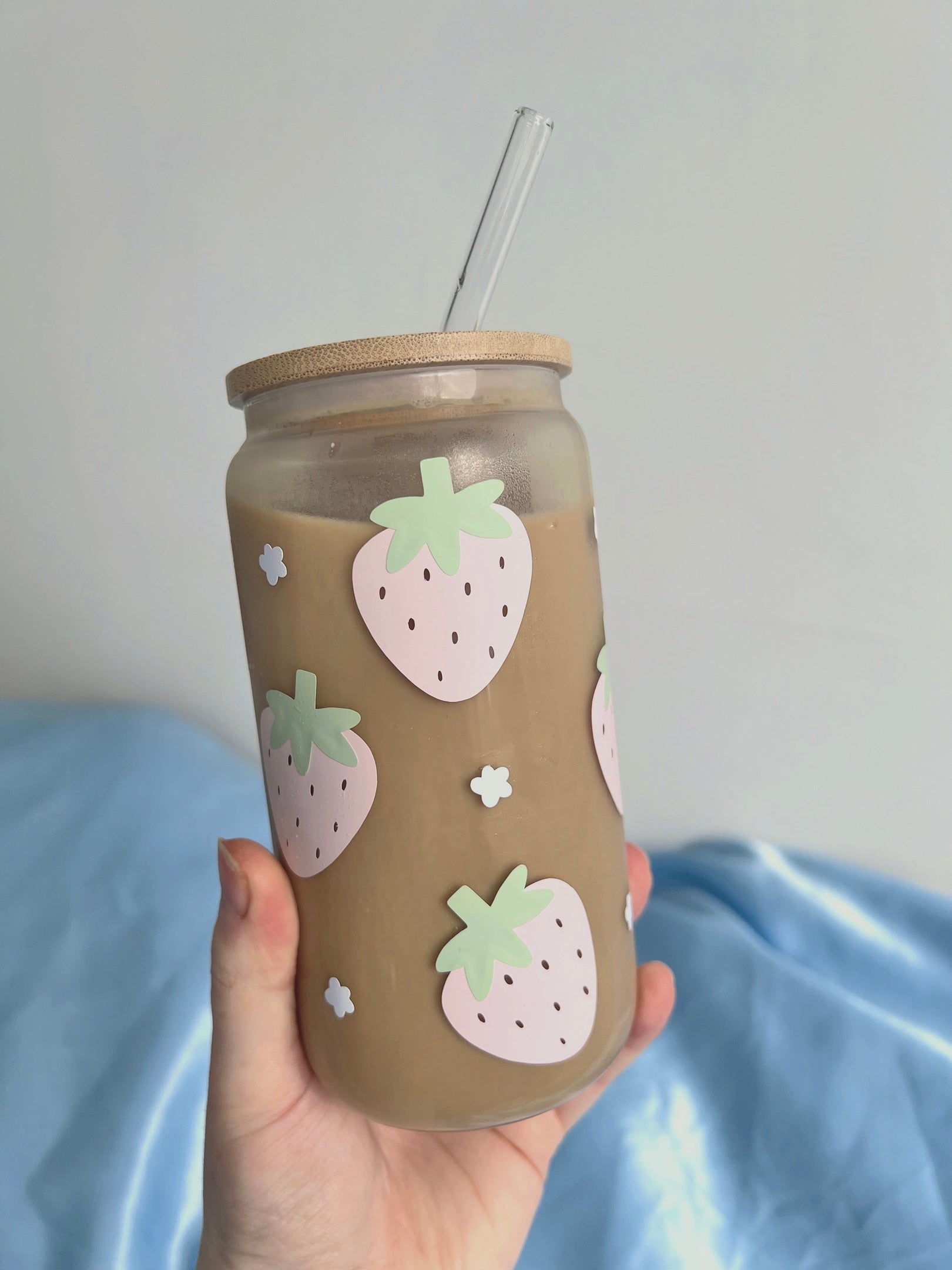 Each cup is made of high borosilicate glass and includes a bamboo lid and reusable glass straw. Each cup can hold up to 454ml (16oz) of liquid and is suitable for hot or cold drinks.