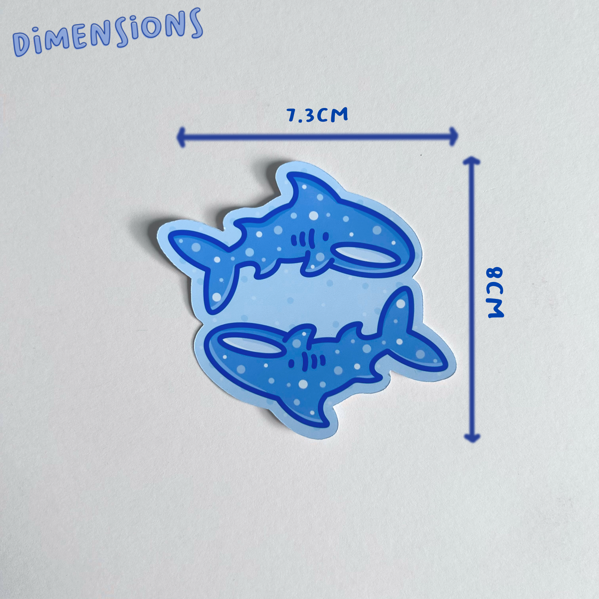 Die cut glossy whale shark sticker approximately 7.3 x 8cm (width x height)